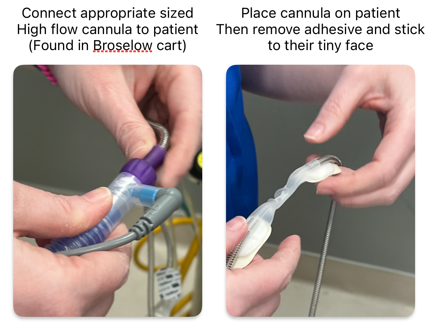 - Place the other end on the patient (make sure the prongs are properly facing). You may need to swaddle the kid and have parents hold them down.